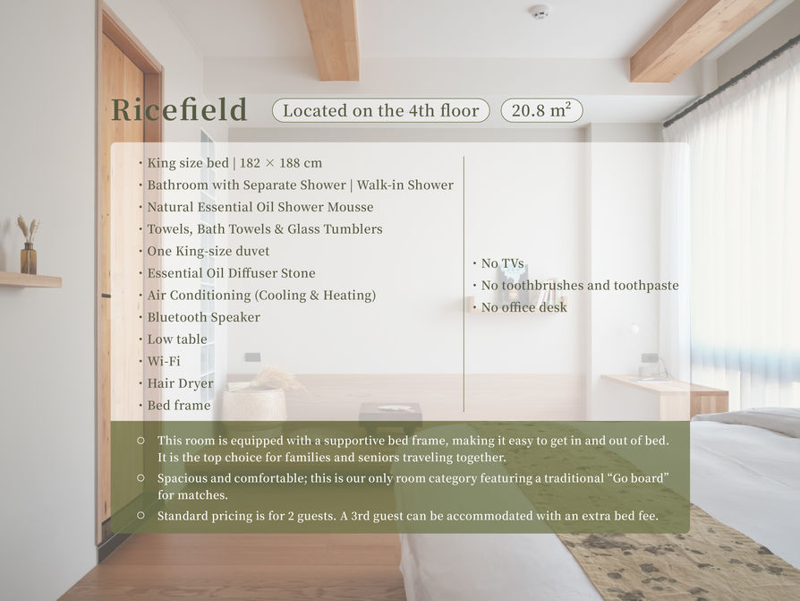 |此房型配置支撐性床架,起身輕鬆不費力,是全家出遊、長輩同行的首選房型