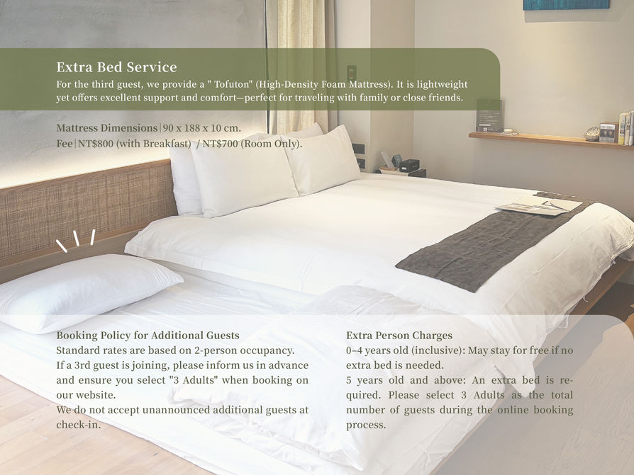 *加床費用:NT$800|含早餐、NT$700|不含早餐